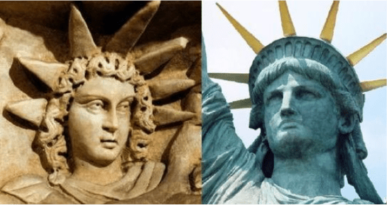 Inspired by the writings of French political figure Édouard René de Laboulaye, sculptor Frederic-Auguste Bartholdi’s and builder Alexandre-Gustave Eiffel’s statue was gifted to the United States by the French government in celebration of their shared philosophical principles, and funded through donations from the American public. Bartholdi’s design alludes to classical republican ideals through its evocation of the feminine personification of America, Columbia, and the Roman goddess Libertas, embracing the mythic dimension of antiquity to place it explicitly in the neoclassical tradition.